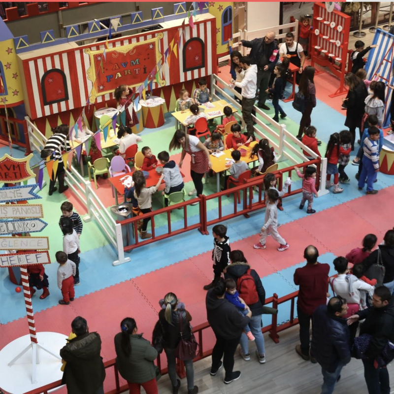 Alışveriş merkezlerinde düzenlenen özel çocuk partilerimizle müzik, dans ve eğlence bir araya geliyor.